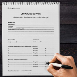 Jurnalul de service este un document esențial care atestă toate intervențiile efectuate asupra sistemelor de securitate: instalări, revizii, testări, remedieri sau înlocuiri de componente. Acesta trebuie completat de către firmele autorizate care se ocupă de întreținerea acestor sisteme și trebuie păstrat la sediul beneficiarului pentru a putea fi prezentat în cazul unui control efectuat de poliție sau alte autorități competente.